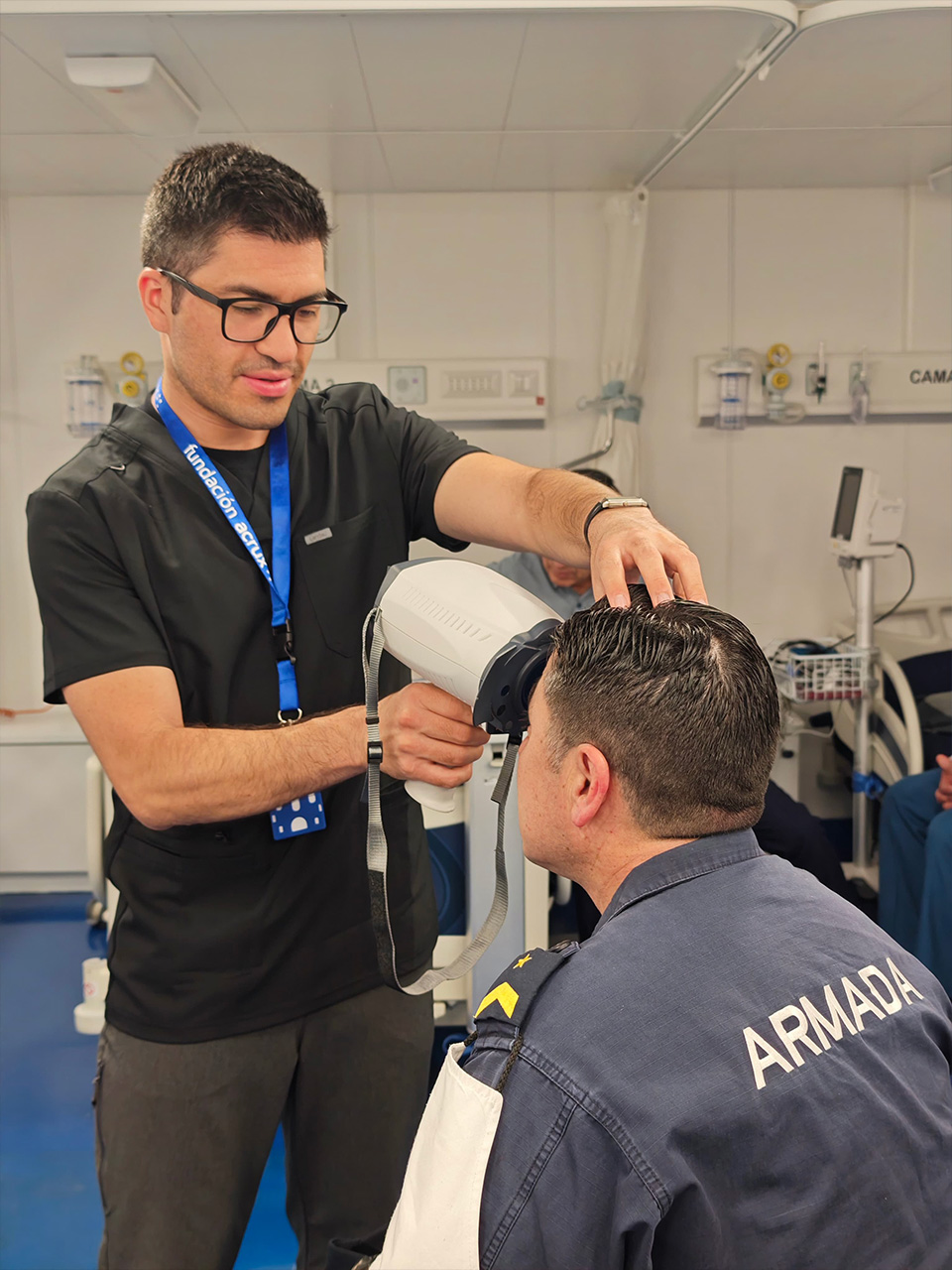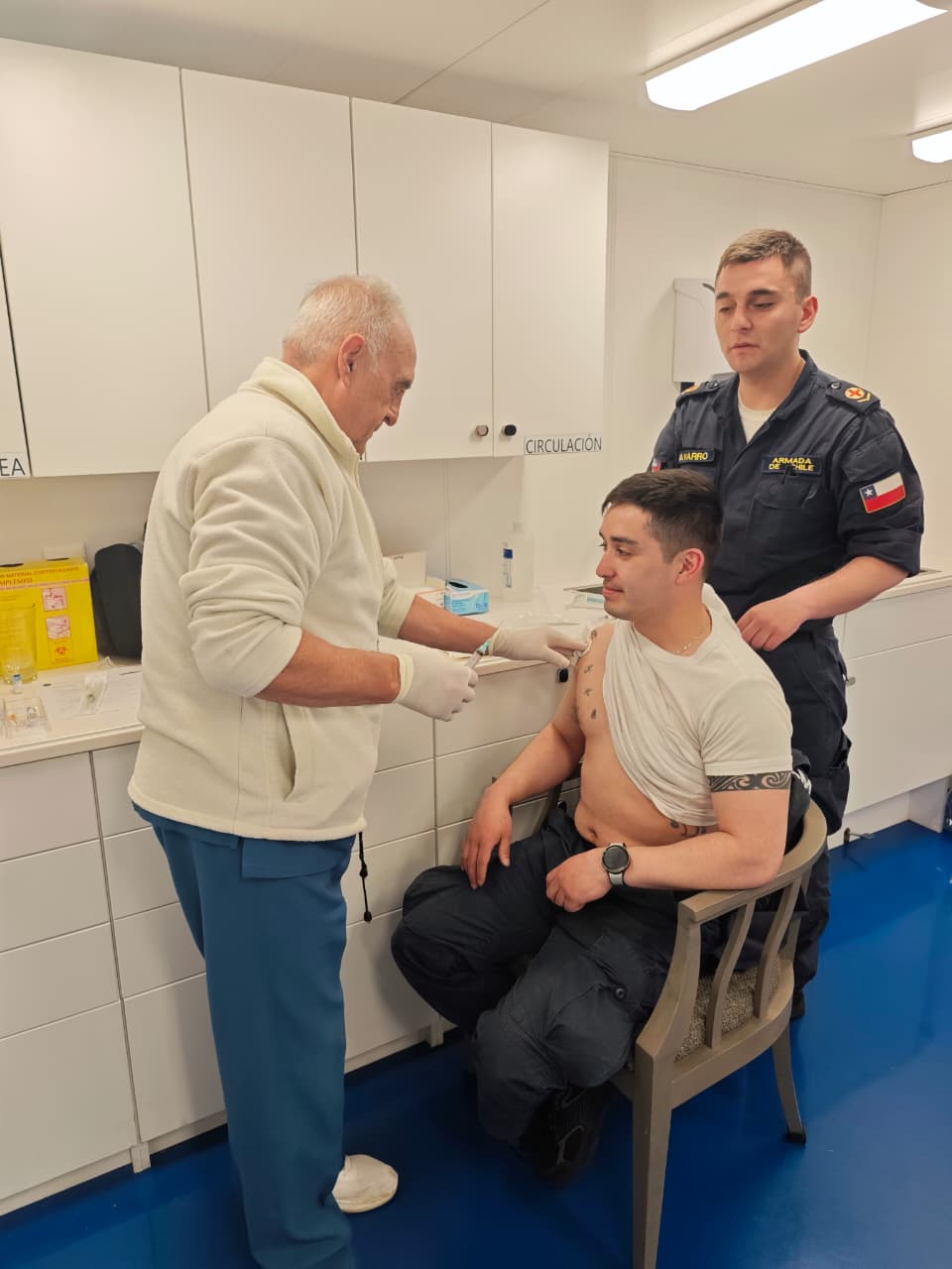 “Soy parte de la dotación del Ejército de Chile, en estos momentos estoy embarcado en el buque de Almirante Viel haciendo labores de geodesia, acá en el continente blanco. Quiero dar los sinceros agradecimientos a la Fundación Acrux y a la Armada por haberme prestado la posibilidad de haber visto un tema médico, en dermatología, la verdad que estoy sorprendido de poderme haber atendido en estas latitudes de Chile, y estoy agradecido por la gestión con todas las especialidades que se abordaron dentro del buque”, agregó Claudio Reyes Norambuena.